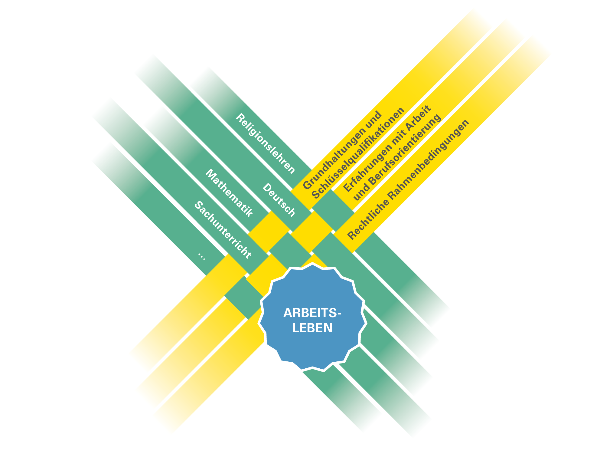 Unterricht in Bezug auf das Lebensfeld Arbeitsleben findet nicht isoliert, sondern unter Einbezug von prozessbezogenen und inhaltsbezogenen Kompetenzen unterschiedlicher Fächer, insbesondere den Fächern Sachunterricht, Technik sowie Wirtschaft und Berufsorientierung statt. Im Zentrum steht die konkrete Bewältigung von Alltagssituationen und Herausforderungen in der (zukünftigen) Arbeitswelt.