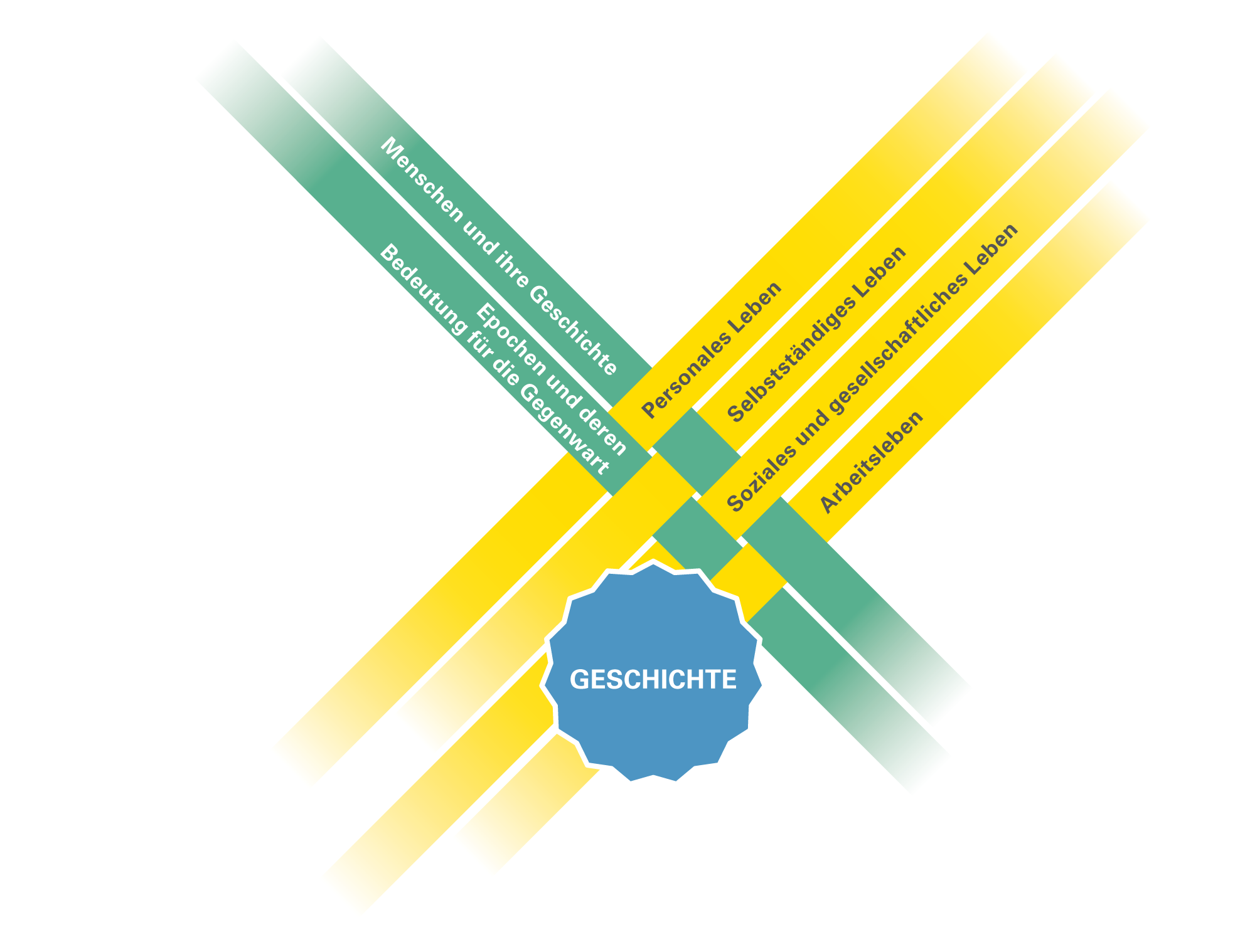 Das zentrale Ziel des Geschichtsunterrichts ist der Aufbau eines reflektierten Geschichtsbewusstseins. Es geht aus von der Erkenntnis, dass Geschichte sich zwar auf die Vergangenheit bezieht, aber keineswegs die Vergangenheit ist, denn sie gehört zur Gegenwart und diese geht aus ihr hervor. Die Schülerinnen und Schüler lernen deshalb schon am Anfang ihres Geschichtsunterrichts, dass Geschichte nicht gleichzusetzen ist mit den Geschehensabläufen in früheren Zeiten.