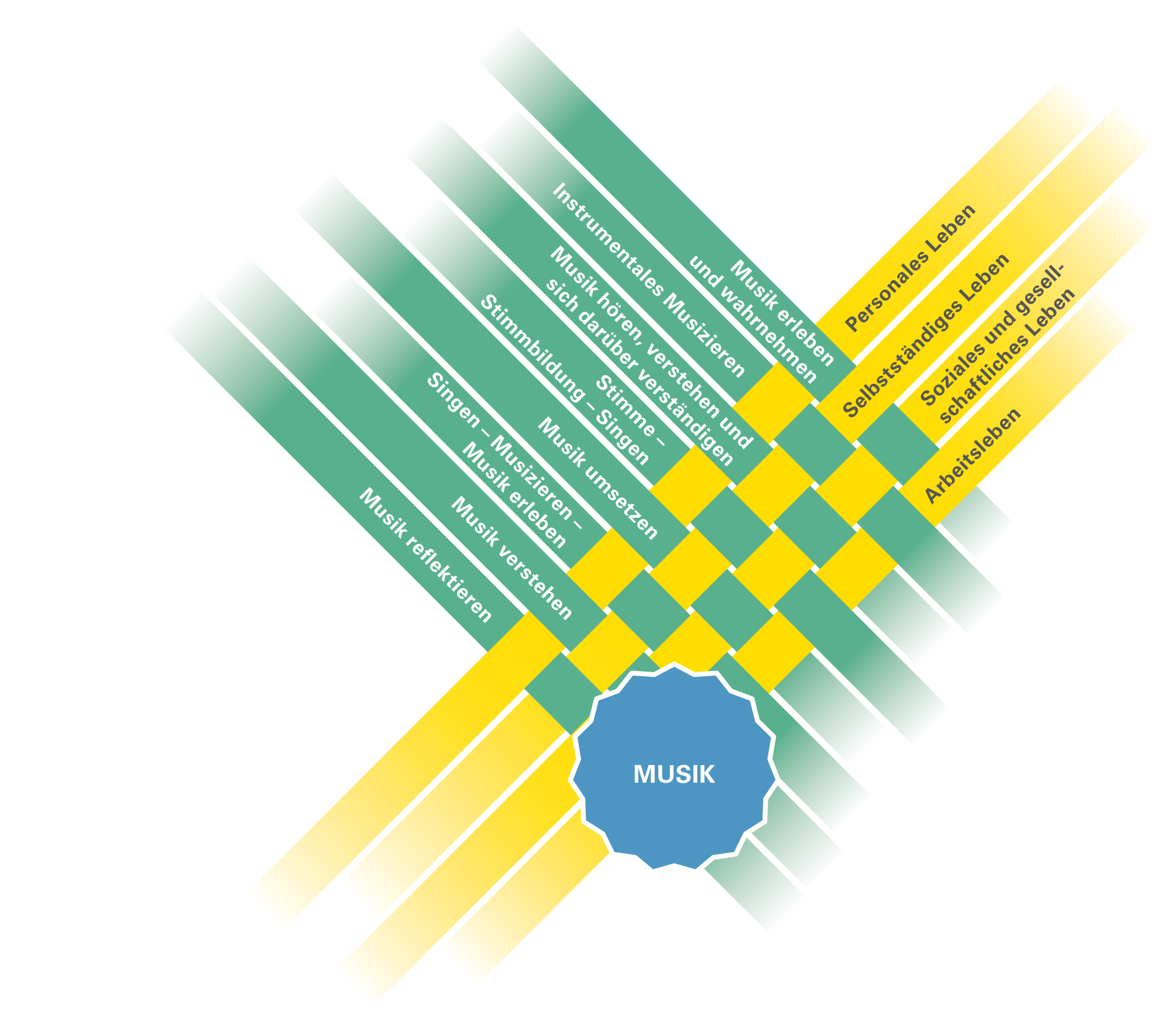 Musikunterricht fördert das Lernen in vielfältigen Bereichen und gibt die Möglichkeit, weiterhin basale Kompetenzen zu erwerben. Die Schülerinnen und Schüler nehmen Musik unterschiedlich wahr; der Austausch darüber fördert Offenheit und Verständnis für noch „Fremdes“. Um miteinander in ein konstruktives Gespräch zu kommen, sind Perspektivwechsel, Empathie sowie Toleranz gleichzeitig Ziel und Lernfeld. Beim musikalischen Handeln sind Originalität, Kreativität und Selbstreflexion gefragt. Musikalisches Wirken ist ganzheitlich und emotionsbezogen. Voraussetzung dafür und gleichzeitig Lernfeld sind der Zugang zu und der Ausdruck von eigener Emotionalität. Die Weiterentwicklung von Durchhaltevermögen, Konzentrationsfähigkeit und Selbstregulation wirkt sich förderlich auf das Lernen auch in anderen Fächern aus. Erfolgszuversicht, Selbstbewusstsein und Zugang zu den eigenen Gefühlen sind Grundlagen für ein erfolgreiches und zufriedenes Leben.