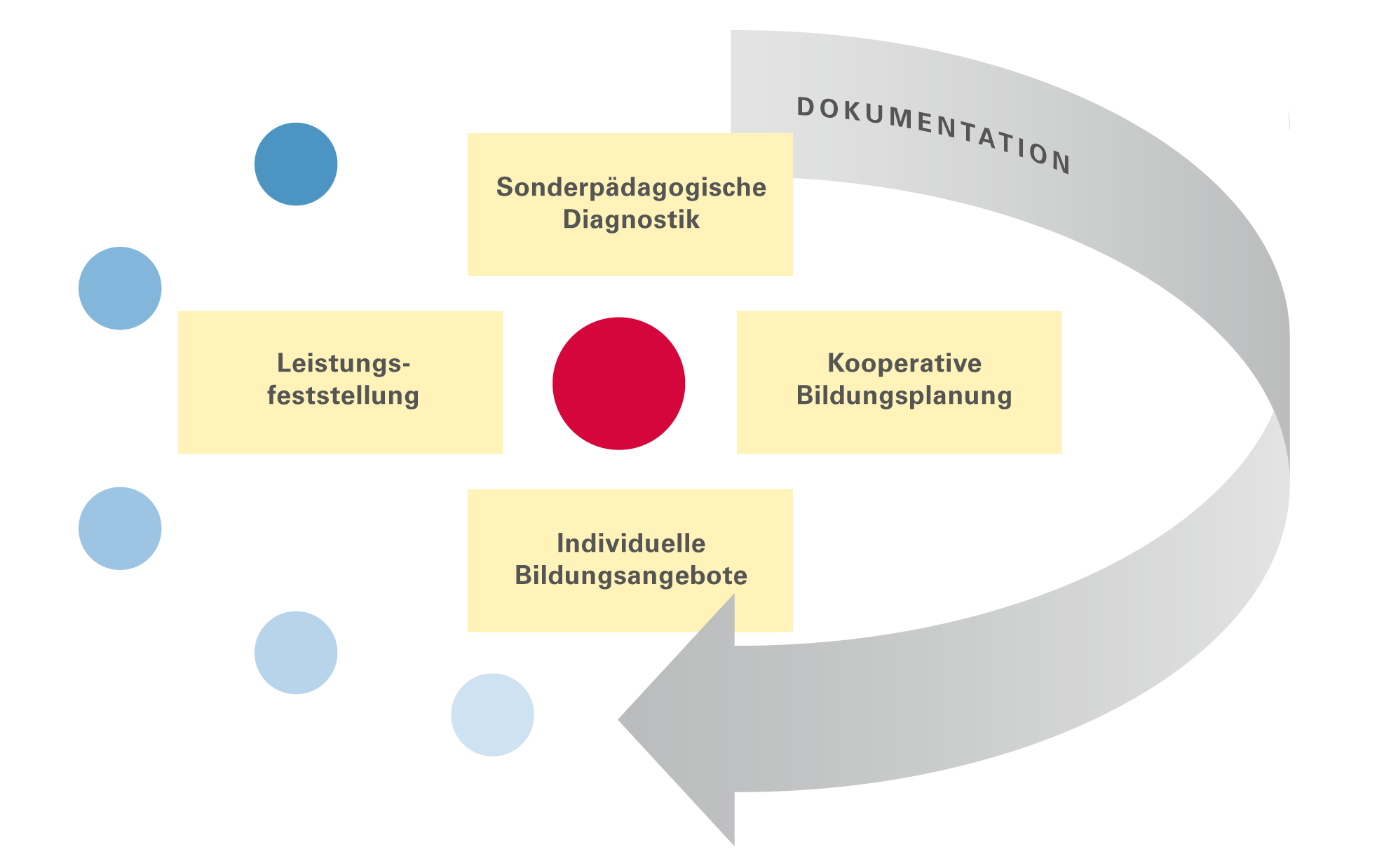 Auf der Basis einer prozessorientierten, dialogisch gestalteten sonderpädagogischen Diagnostik wird der individuelle Entwicklungs-, Lern- und Leistungsstand erhoben, bewertet und dokumentiert. Ausgangspunkt ist die einzelne Schülerin und der einzelne Schüler mit ihrer/seiner jeweiligen Lernausgangslage, den individuellen Kompetenzen und Bedürfnissen sowie den jeweiligen Kontextfaktoren, die sich auf ihre/seine Lebenswelt sowie die gegenwärtige, tatsächliche Lebenslage beziehen. Die hierauf aufbauende kooperative Bildungsplanung erfolgt unter Beteiligung der Schülerin oder des Schülers, der Eltern und Sorgeberechtigten (im Folgenden „Eltern“) sowie weiterer am Bildungsprozess Beteiligten. Diese Erziehungspartnerschaft beschreibt dabei einen Dialog, bei dem die Erfahrungen und Absichten des Gegenübers geachtet und ernst genommen werden, zugleich aber auch unterschiedliche Erwartungen und Auffassungen geklärt und Vereinbarungen getroffen werden. Ziel der gemeinsamen Bildungs- und Erziehungsaufgabe ist es, eine größtmögliche Passung zwischen dem Bildungsanspruch der Schülerinnen und Schüler und dem Bildungsangebot herzustellen, diese aktiv als Akteure der eigenen Bildungsprozesse einzubeziehen und Aktivität und Teilhabe als entsprechende Ausgangs- und Zielpunkte der je eigenen Lebenswirklichkeit anzusehen. In diesem Prozess entwickelt sich die Lernfähigkeit der Schülerinnen und Schüler über den Erwerb von Lern- und Handlungsstrategien, Lern- und Anstrengungsbereitschaft sowie über die Entwicklung von Routinen.