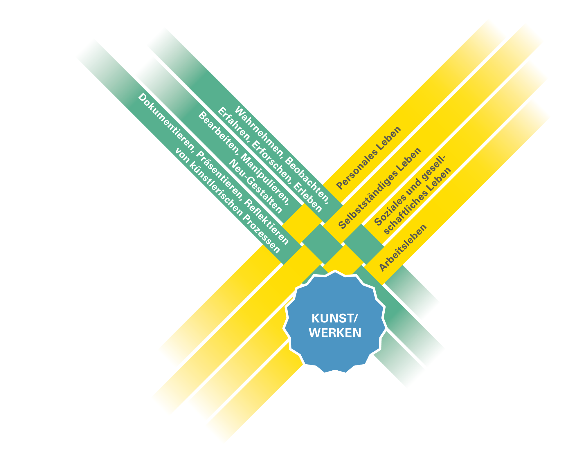 Im Fach Kunst/Werken wird der künstlerischen Bildung Raum gegeben. Sie zeichnet sich besonders durch die Subjektorientierung aus. Diese äußert sich, indem durch das eigene künstlerische Tun und Handeln und durch das Interesse an Vertrautem wie Neuem das Selbst gebildet wird. Künstlerische Bildung meint demnach künstlerisches Denken und Bildung des Subjekts in der Gegenwart durch Kunst. Diese Selbstbildung entsteht durch eine intensive künstlerische Auseinandersetzung, welche das Fach Kunst/Werken wie folgt leisten kann: Im Fokus der künstlerischen Bildung stehen die Schülerin und der Schüler als kunstschaffende Individuen. Durch Wahrnehmen, Erforschen, Entdecken, Spielen, Verwerfen, Explorieren, Imaginieren und Reflektieren im gegenseitigen Austausch haben die Schülerinnen und Schüler die Möglichkeit, sich je nach eigener Fähigkeit und individuellem Entwicklungsstand Themen, Gegenstände und damit einen Teil der Welt aktiv anzueignen.